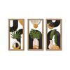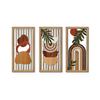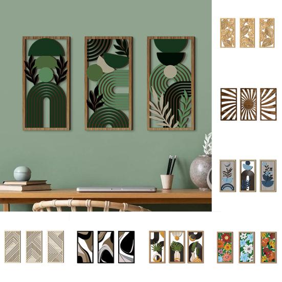 3 Pcs Boho Wood Wall Art Decor Minimalist Plants Geometric Hollow-out Hanging Ornament Abstract Wall Sculptures for Home Living Room Bedroom Kitchen