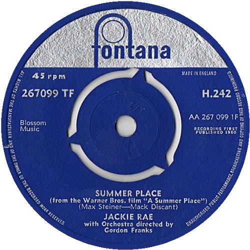 7inch Record JACKIE RAE Summer Place H242 Fontana 1960 UK Pop Used