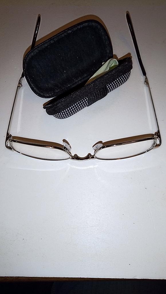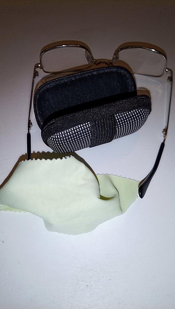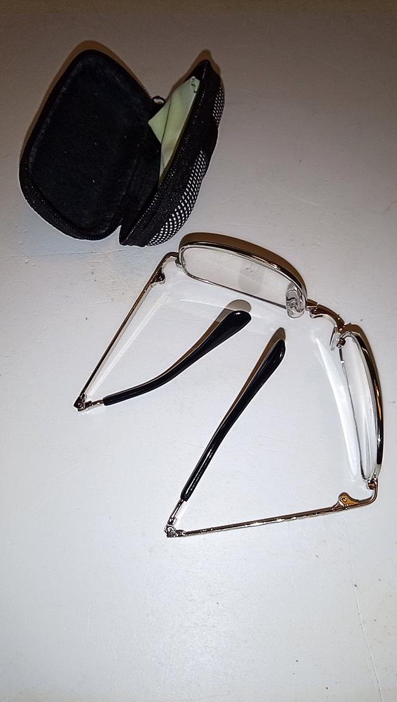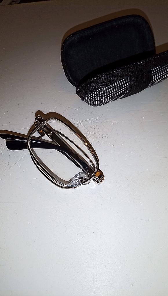 Draagbare zilverkleurige opvouwbare leesbril, zwarte behuizing met riemclip +1,5 ~ 4,0