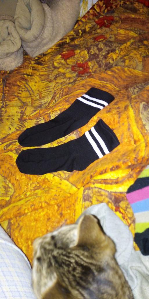 Leuke sportieve sokken! Het materiaal is een beetje dun, maar het maakt niet uit Ik vind witte streepjes aardig! Sokken passen goed bij sneakers en andere sportieve schoenen Ze zien er stijlvol uit ✨💙🖤🤍 Ze waren samen met drie andere bestedingen in één pakket geleverd, makkelijk om te halen Vijf sterren dus!