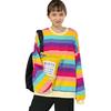 Dames O-hals Lange Mouw Shirt Mode Regenboogstrepen Los T-shirt Vrouwelijk Casual Tops
