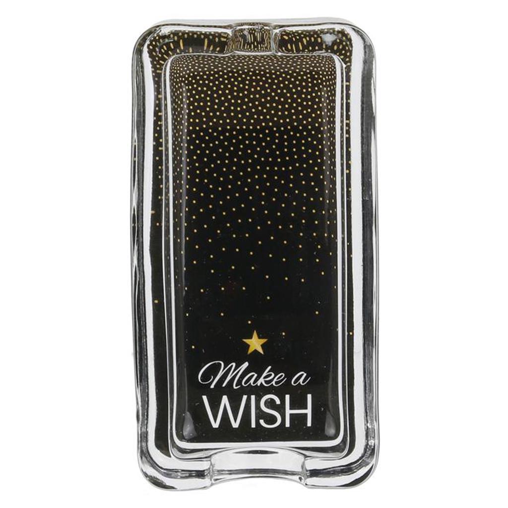 Les Trésors De Lily [Q4391] - Cendrier verre 'Messages' noir doré paillettes (Make a Wish) - 11. 5x6x2. 5 cm