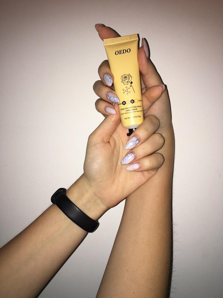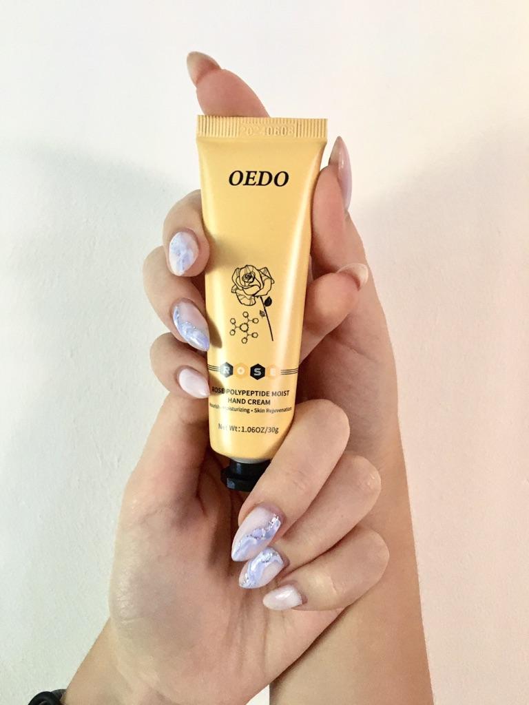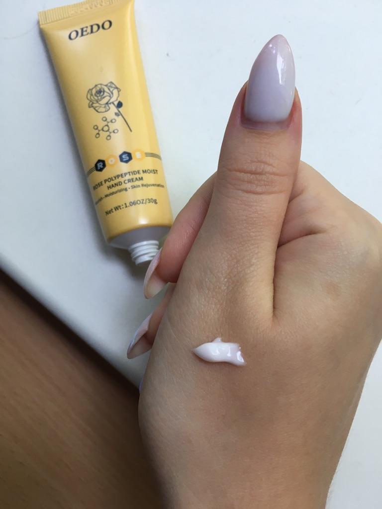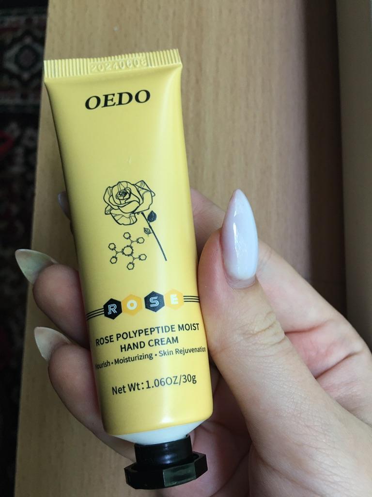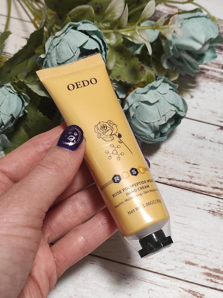🌹 HAND CREAM BY OEDO🌹 Hello my loves 😊 I work a lot with my hands because I have several apartments for holiday guests and I still do everything myself 🙌 This means: my hands are always exposed to some kind of cleaning agent. In my case it is even more important to provide the hands with enough moisture and care 👆 So I use some kind of hand cream all the time and I became aware of this cream with rose extract and wanted to test it. 🌹 The packaging: It couldn't be better. The cream is specially shrink-wrapped in foil, so nothing can leak out. Here you can see the quality of the product right away. 🌹 Crowd: 30g The cream has a small volume and is perfect for on the go. Ideal to take away, as the cream fits in every pocket. 🌹 Fragrance: Pleasant, light rose scent. 🌹 Effect: The rose provides relief for rough, reddened and stressed skin. It soothes irritations and can reduce flaking on the skin's surface. Like many essential oils, rose oil is naturally anti-inflammatory and antiseptic. 🌹 Even a small amount is enough to make your hands soft and supple again. The cream absorbs very quickly and leaves no greasy residue. 🌹 Conclusion: The price-performance ratio is right. The cream is ideal to take away. The cream cares for the hands and protects them from drying out. Time will tell whether the result after regular, long-term use looks like the photo from the seller 😉