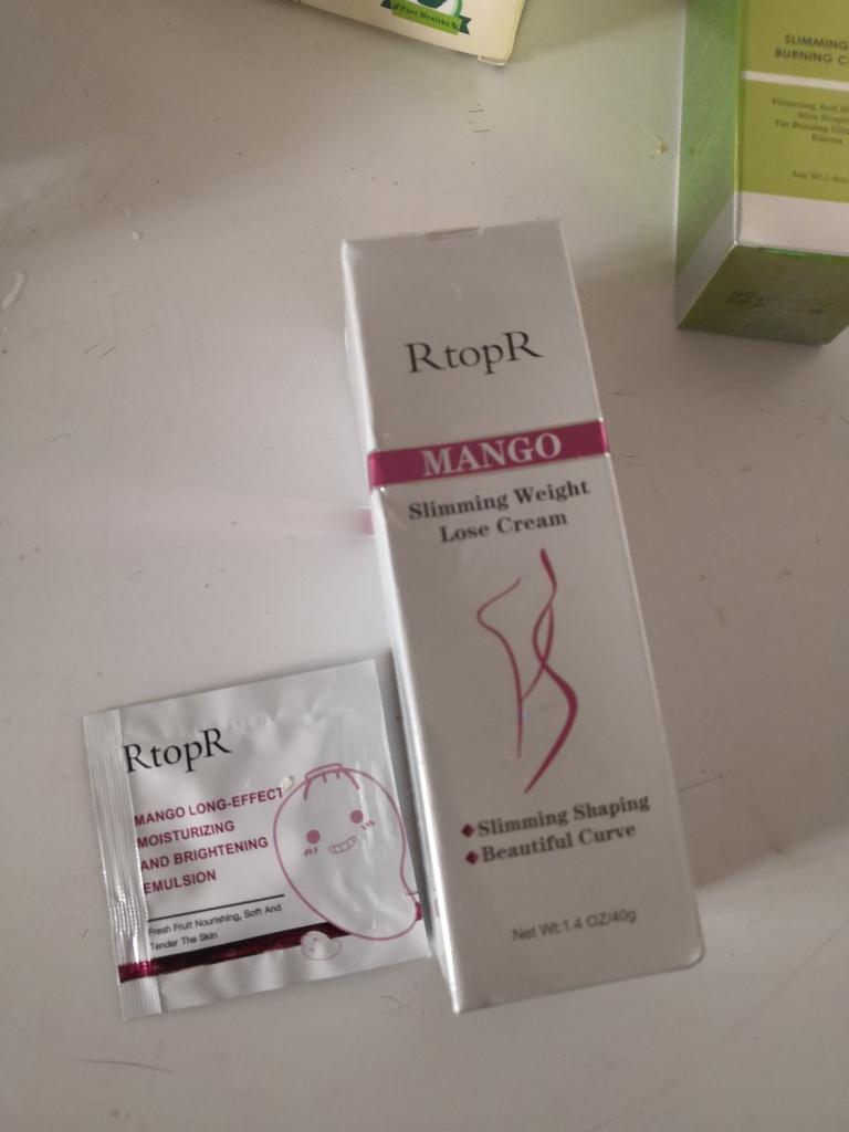 🥭 Mango Slimming Cream 🥭 Brand: RtopR ⭐⭐⭐⭐⭐ This product has been bought more than 10.000 times so far! And it has 4.4 stars out of 5! Wow that's a huge success if you ask me! I finished couple of bottles of this cream before and I like it. This cream helps firming the loose skin and reducing cellulite while giving good hydration to skin. It contains mango extract and they have a great smell. How to Use: 1) Apply proper amount of the cream to the areas you want to be thinner or you want firmer skin... 2) Massage cream until it is fully absorbed by your skin. 3) Then wrap that part with plastic wrap for 30-40 minutes. The total amount is 40gr. The box was sealed with a plastic wrap, and also the tube was. Mango cream series of RtopR brand is very good.