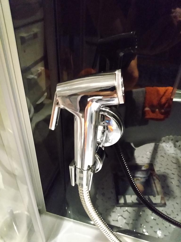 Ik kan hem niet aansluiten het kopje is te klein voor de wc kraan en te groot voor de keukenkraan dus ik kan hem niet aansluiten Ik vind heel erg jammer Ze hadden moeten eigenlijk rekening mee houden er wordt bestelling gedaan van de hele wereld overal van het landen maar het past niet En er zit ook geen hangertje bij om op te hangen