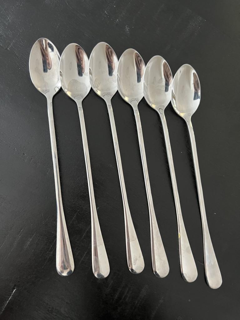 6 stuks roestvrijstalen lepel met lange steel, latteglas, ijscoupe, koffielepels