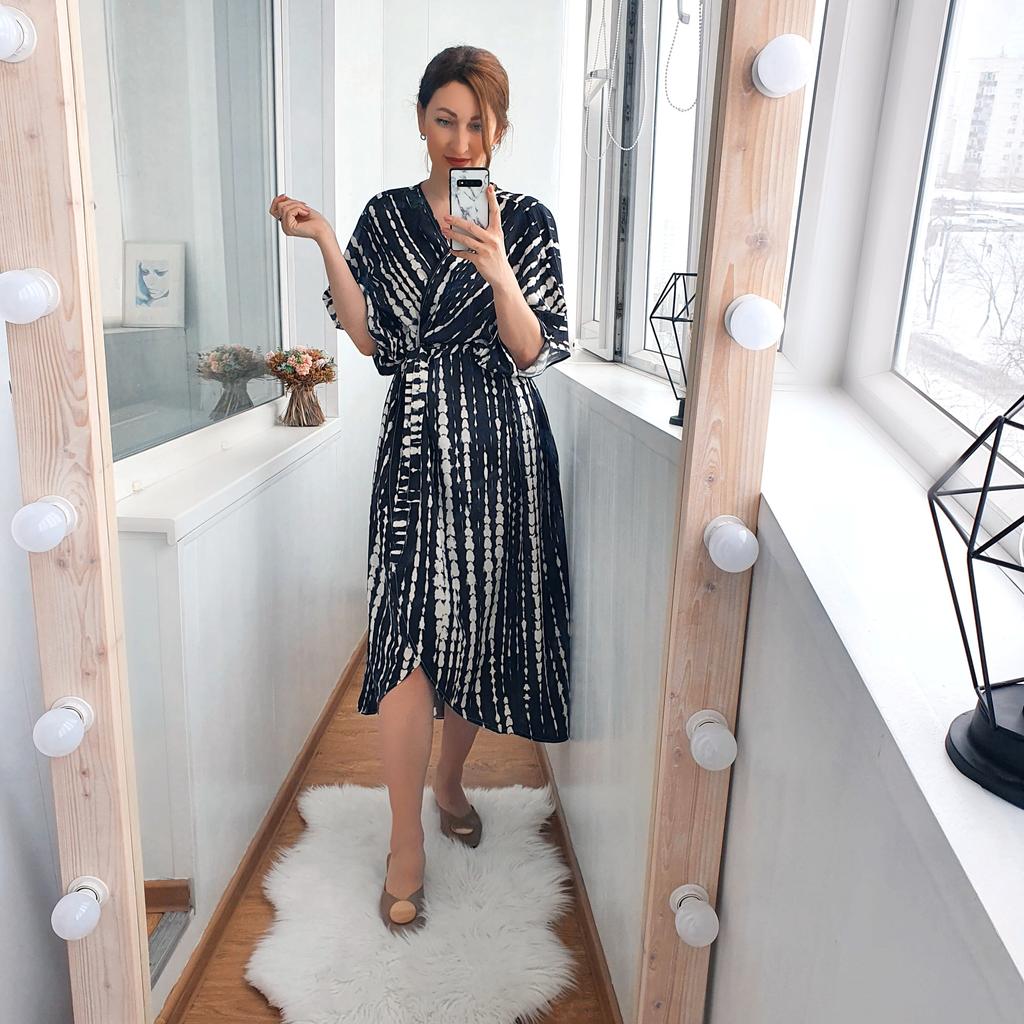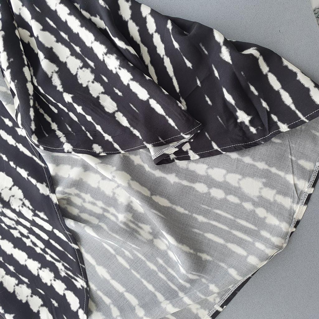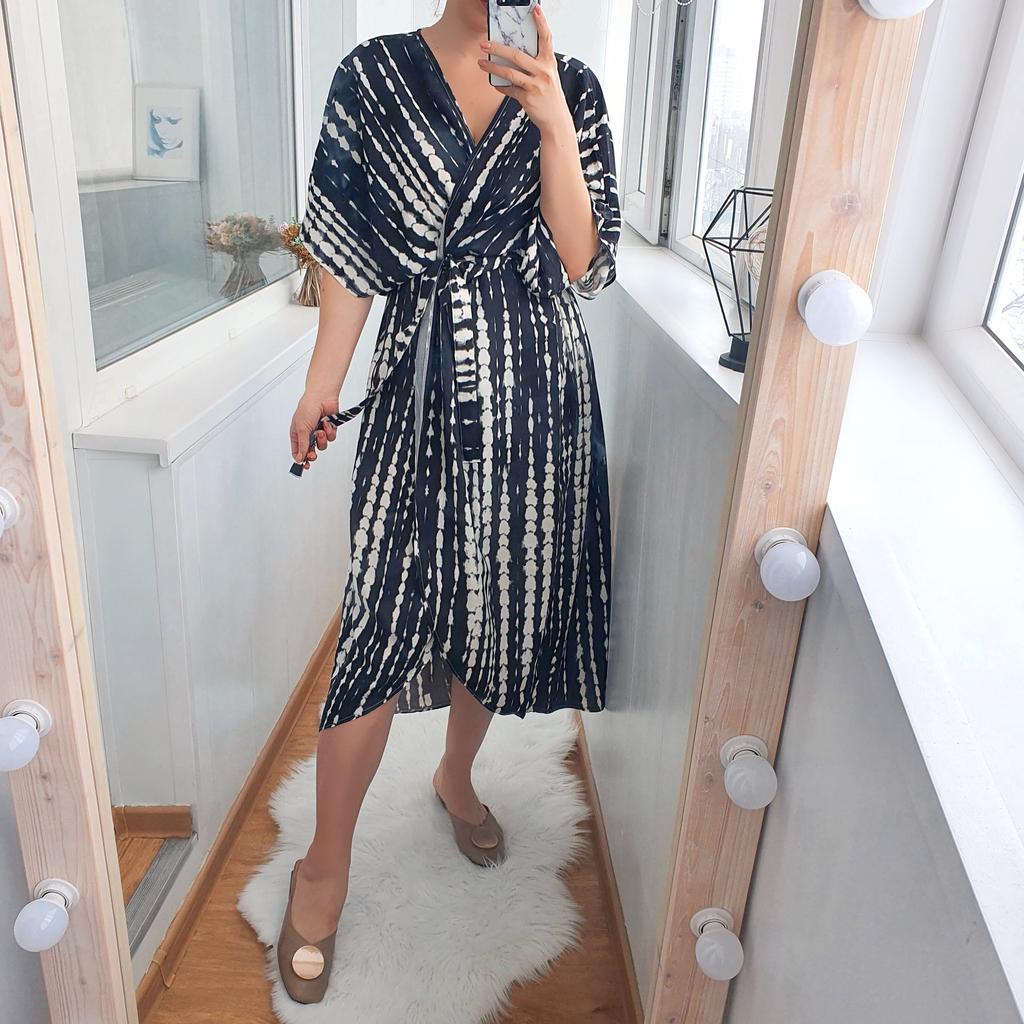 kimono 👘 beautiful! It is ideal both for the beach and pool and to complete your outfits. It has a wonderful fabric, very soft, fresh and with a spectacular fall and movement. The sleeve is continuous and has a belt. Washes and irons great. I recommend it 100%, it is one size fits all and exact to the photos. The shipment 📦 arrived on time and in perfect condition