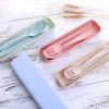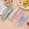 Draagbare Bestekset Kinderen Tarwestro Serviesgoed Outdoor Kamperen Eetgerei Met Mini Doos Vork Lepel Eetstokjes Gebruiksvoorwerpen