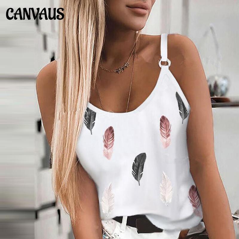 Nieuwe damesmode zomer casual verenprint spaghettibandjes mouwloze tanktops