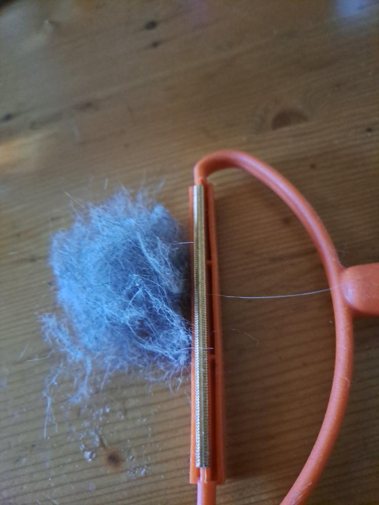 Prima Doet wat het moet doem Die pluk haar is wat ik vanaf een halve zitting van de bank had gehaald met dit borsteltje