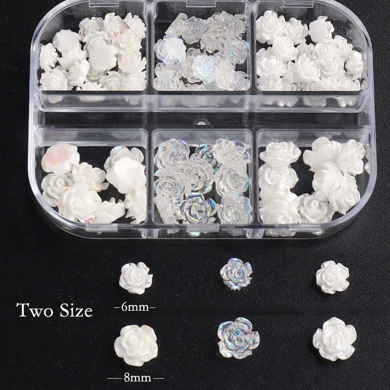 White Aurora Camellia Nail Art Jewelry Acrylic Resin Flowers Design Elegant Wedding Charms Accessories Rhinestone Decor