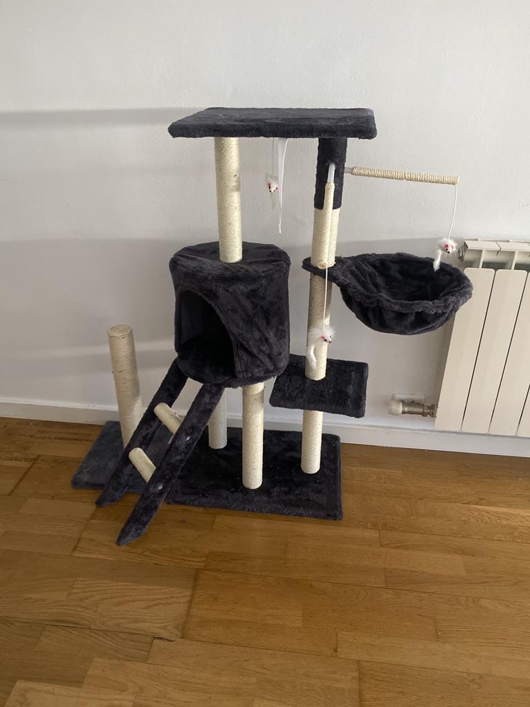 I was able to set up the scratching post in a short time. It is simply put together and tightened using the screws that have already been installed. Finally you can attach it to the wall, then it will be really stable. The quality is very good and I like the design. With stairs and a cave for the cats, then individual mice hang on them to play with, and there are several places to lie down. And he's really big and our cat is happy.