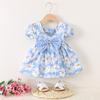 Bloemenjurk voor meisjes met strik voor kinderen, rugloze baby-prinsesjurk met korte mouwen