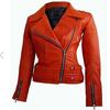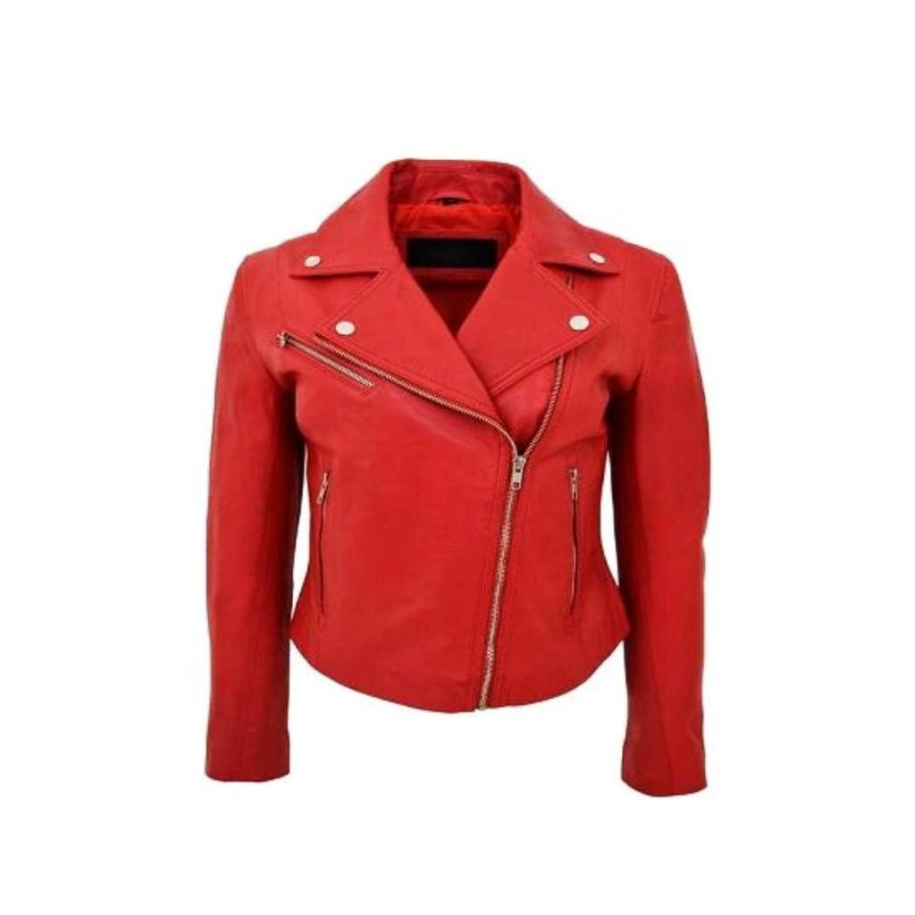NOORA Womens Lambskin Red Leather Jacket, Motorcycle Jacket, Slim Fit Winter Jacket |