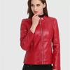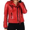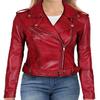 NOORA Womens Lambskin Red Leather Jacket, Motorcycle Jacket, Slim Fit Winter Jacket