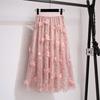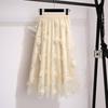 Herfst Winter Dames Hoge Taille Casual Lange Rok Kleding Mesh Kralen Mid-kuit Rokken Vrouw Lange Rokken Voor Dames