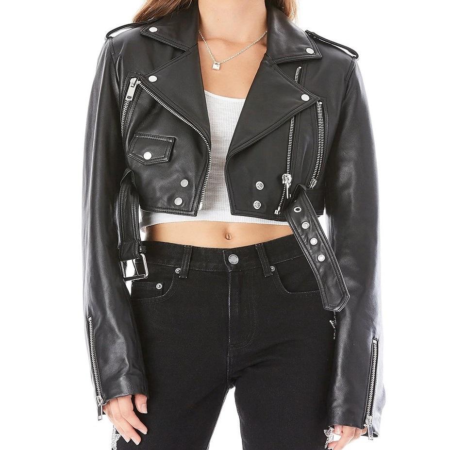 Womens & Girls Sheep Leather Jacket | Lambskin Leather Cropped Motor Bolero Shrug Biker jacket Slim Fit Motor Biker Real Lambskin Jacket |