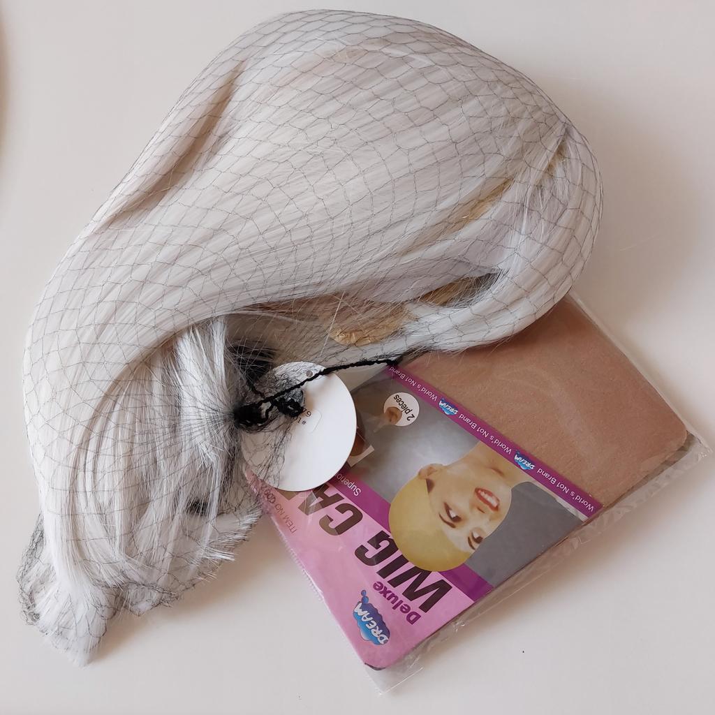 Good quality wig, I like that it has the roots, since it makes it much more real, I was pleasantly surprised since it suits me very well and it seems to be my hair. It comes with 2 flesh-colored beanies accessories to hide the hair and to better adhere to the head, it has its root line which achieves that effect of reality of hair. It is a very beautiful and elegant white-blonde color The shipment was made quickly and has arrived within the stipulated period.