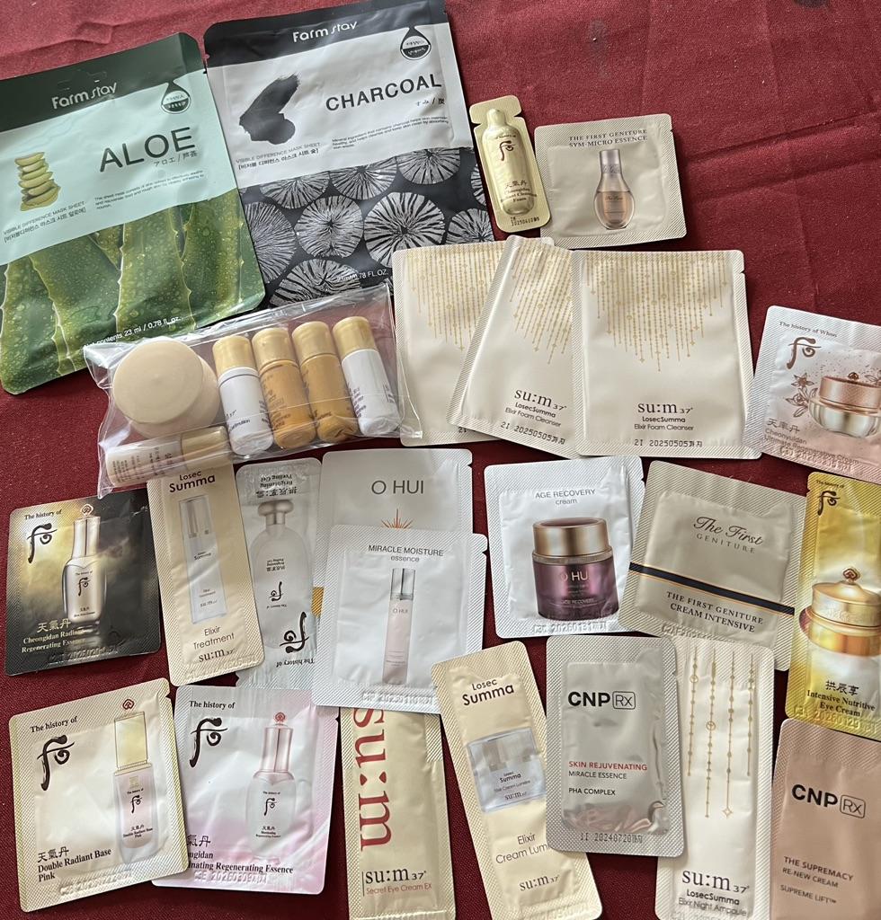 *mini-cosmetic probe* 💥𝗟𝗶𝗲𝗳𝗲𝗿𝘇𝗲𝗶𝘁 About 3 weeks 💥𝗟𝗶𝗲𝗳𝗲𝗿𝘂𝗺𝗳𝗮𝗻𝗴 The scope of delivery includes various cosmetic samples from various manufacturers in Korea. I received 28 samples. The content of a package always varies. So you can't predict exactly which product samples will be included in the package, but each set is guaranteed to contain a miniature and 2 Farm Stay brand face masks. And the number can also vary. The set contains 25-30 different test patterns from the Premium-Kosmetikmarken Sum37, O HUI, CNP, VDL, The History of Whoo und Sulwhasoo 💥𝗤𝘂𝗮𝗹𝗶𝘁ä𝘁 I haven't been able to try all the samples yet, but I'll be happy to keep you posted. In any case, they are personal care products, such as face masks, body care cream and so on Since I have mostly had positive experiences with cosmetics at joom so far, I will certainly not be disappointed here either. 💥𝗙𝗮𝘇𝗶𝘁 I think it's great to get to know new products in this way.