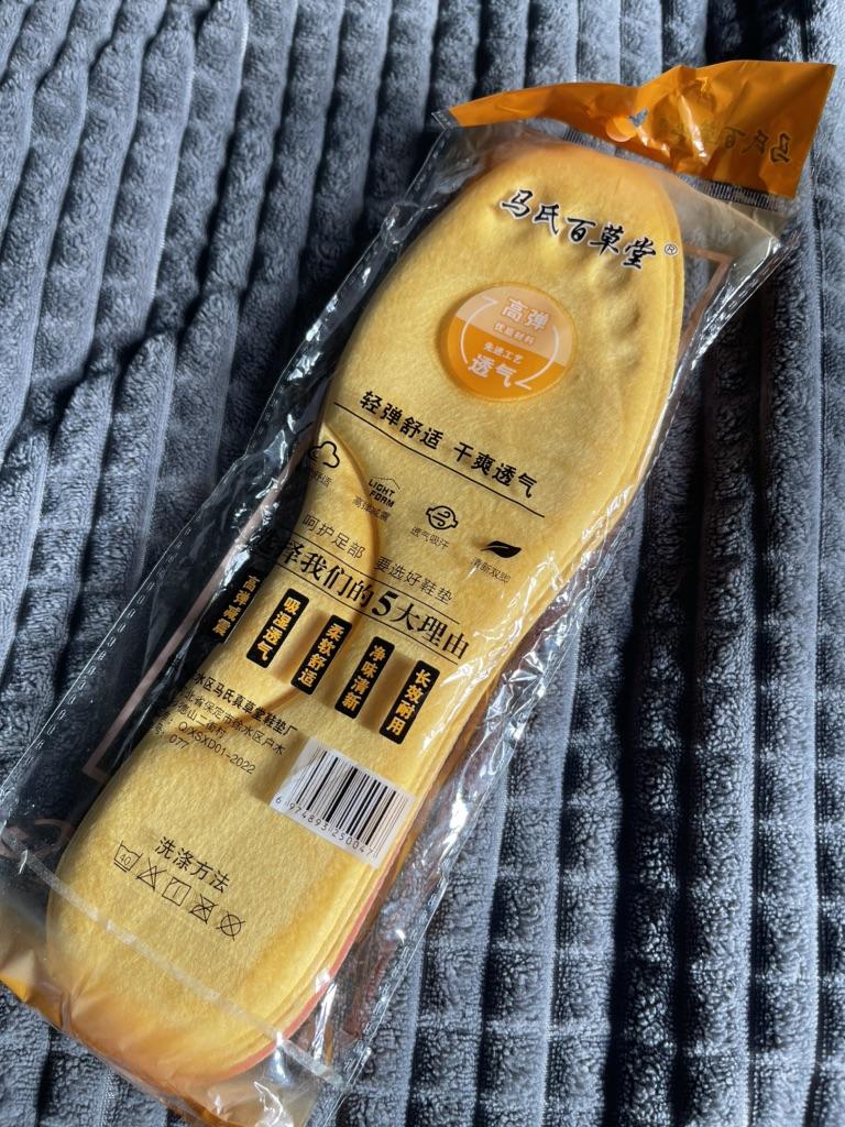 INSOLE. Comfortable memory foam insole. Already purchased previously. This time I ordered it for my mom. Arrived in Italy with tracked shipping in 20 days. Packed in a plastic bag. No flaws. Soft to cushion the impact of walking and warm to cushion the impact of walking. No bad smell. Recommended purchase!