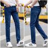 Eenvoudige gewassen jeans in vijf zakken, elastische, nauwsluitende broek, denim herenjeanstrend