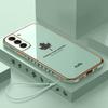 Luxe Maple Leaf Lanyard Plating Case voor Samsung Galaxy S23 Ultra S22 Plus S21 S20 Plus Ultra S21 FE S22 Plus Zachte siliconen lensbeschermingshoes