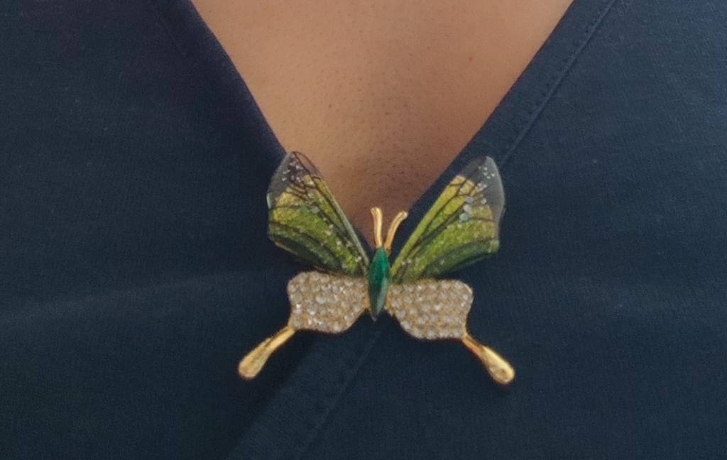Pinkdudu 2023 Korean Green Butterfly Brooch Romantic Luxury Creative Purple Resin Metal Brooch Pins for Women Jewelry PD1228