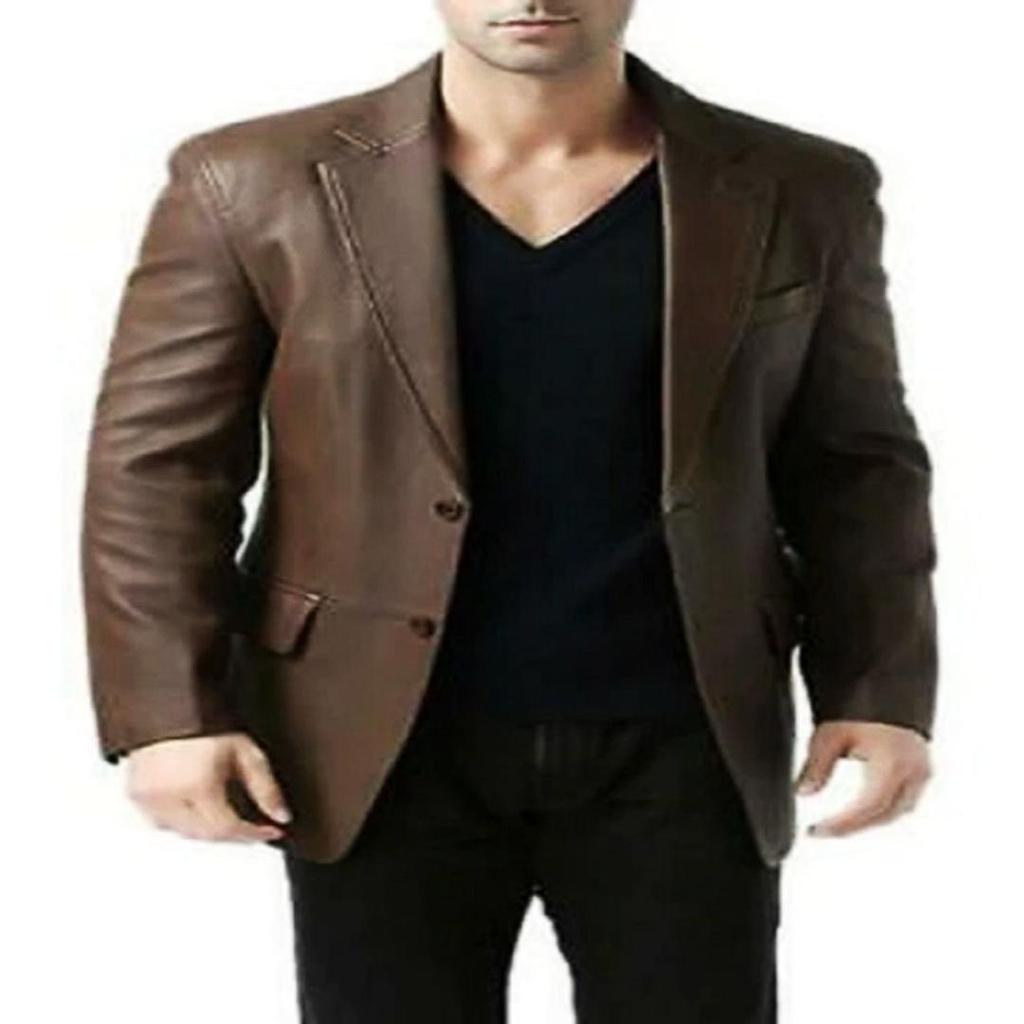Noora Mens Dark Brown Formal Leather Blazer With Two Button | Designer Brown Meeting Wear Leather Blazer