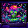 Fluorescent Tapestry UV Blue Glow Skull Flower Eye Tapestry Background Cloth Bedroom Bedside Hanging Cloth Tapestry