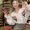 Spring Autumn Chic Long Sleeve Flower Embroidery Blouse Women Top White Shirt Cute Tops Fashion Single Breasted Clothes