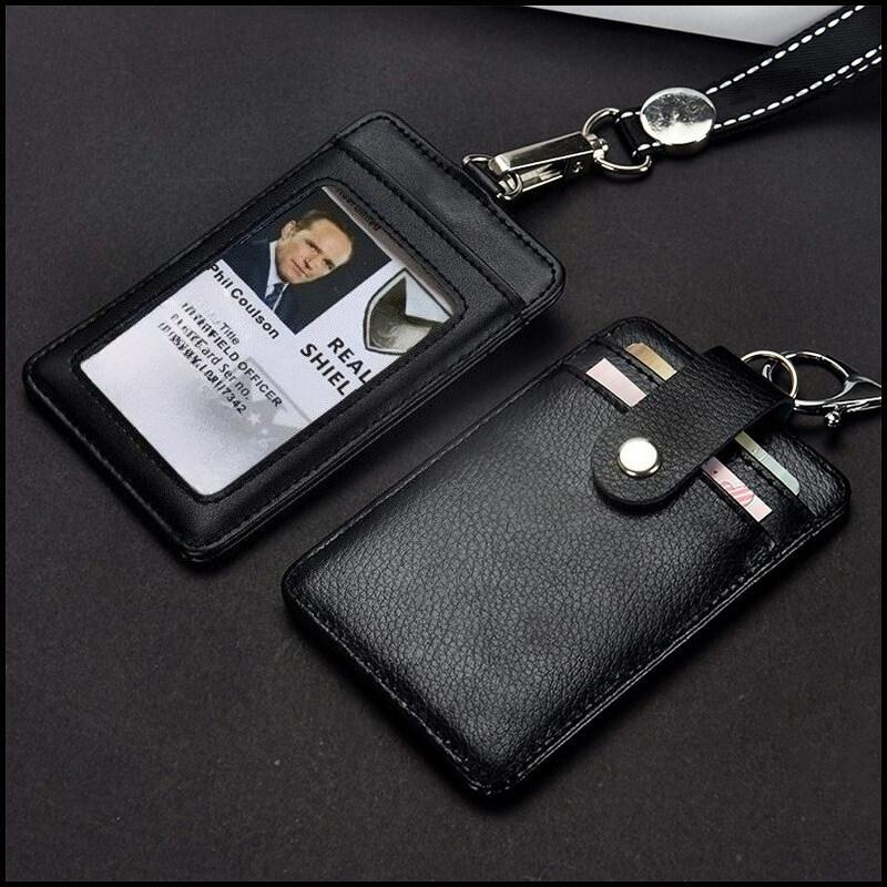Echte leren ID-kaarthouders Zakelijke mode Werkkaarthouder met nylon koord ID-borstkaarten Naamplaatje