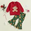 Ontwerp: Kerstjurk voor kleine meisjes, lange mouwen, ronde hals, letterprint, effen kleur, uitlopende broek, laat uw kleine meid er schattig uitzien.