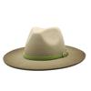New Outer cream Inner green Wool Felt Jazz Fedora Hats with Thin Belt Buckle Men Wide Brim Panama Trilby Cap 56-58CM