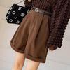 Casual corduroy shorts met hoge taille Dames A-lijn losse broek met wijde pijpen
