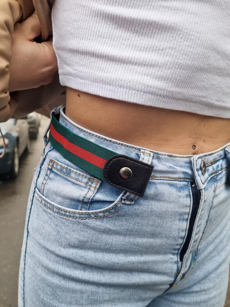 Belt without buckle. unisex (suitable for men and women). Very comfortable, almost invisible, suitable for any trousers and skirts. Thanks to a special mechanism, you can adjust it to your needs, lengthen or shorten it. Fits waist up to 110 cm. I have this one. I bought another one in a different color..