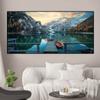 Landscape Boat Lake Bres Italy Canvas Painting Nature Emerald Mountain Posters and Prints Wall Pictures Home Decor No Frame No Frame