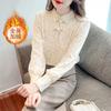 Elegant Long Sleeve Lace Bottoming Fleece Shirt with Half Turtle Neck for Women Thickened and Warm for Winter
