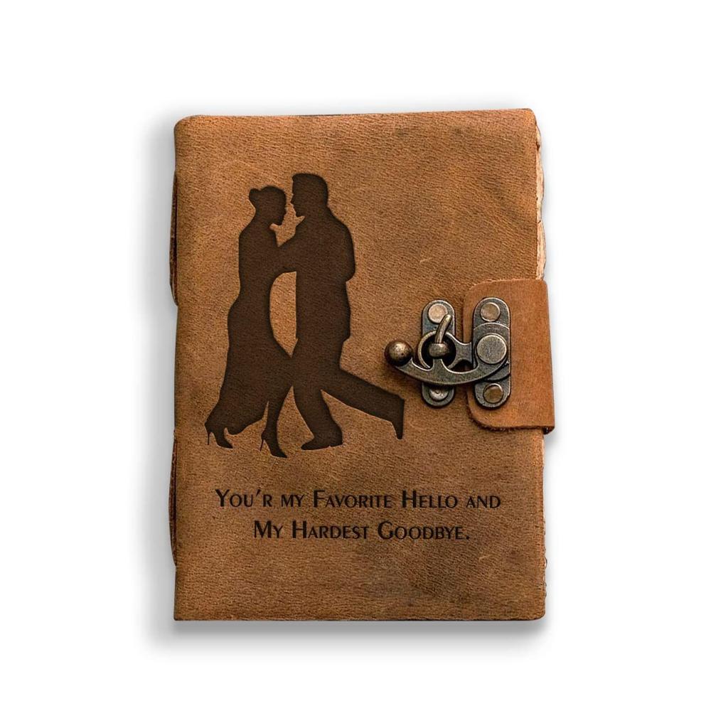 Lederen kaft handgemaakt deckle edge papier vintage koppels gegraveerd dagboek met metalen slot dagelijkse dagboekplanner schrijfnotitieboekjes