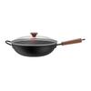 Creatief productontwerp: Het handvat van de wok is gemaakt van hout, zodat het koel blijft en gemakkelijk vast te pakken is. Dankzij het afneembare ontwerp kan de wokpan in de oven worden gekookt. En de ring op het handvat is bedoeld om opbergruimte op te hangen en keukenruimte te besparen. Het schenkmondje is handig om de soep in de schaal te schenken. Er zitten draadjes aan de onderkant van de wok. Concaviteit en convexiteit kunnen het bodemoppervlak en het verwarmingsoppervlak vergroten, warmte beter verzamelen en warmte gelijkmatig geleiden.