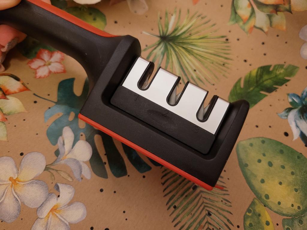 I'm sure you're like me... A drawer full of kitchen knives, but none of them are really sharp and cut properly. Then you buy new knives again and the old ones stay dull in the drawer. This is finally a thing of the past. I found what I was looking for here on Joom and got this great knife sharpener. The delivery arrived undamaged within 14 days. The price is really cheap and the dull knives become super sharp again in no time. Thanks to the ergonomic handle shape, you always have the sharpener securely in your hand. The bottom is rubberized and can also be placed on the kitchen worktop. You then pull the knife through the 3 different levels from coarse to fine and thus achieve very good sharpness. You can also use it to sharpen scissors. This worked very well for me too. A very simple tool that should not be missing in any kitchen. That's why I give it full marks. My review: ***** ++++++++++++++++++++++++++++ IMPORTANT: If you want to save a little more when shopping, you are welcome to do so 10% discount code: Use CHECKER10 (applies to all products on Joom) ++++++++++++++++++++++++++++
