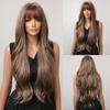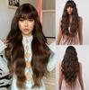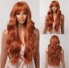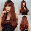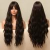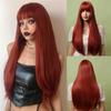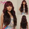 Lang Golvend Bordeaux Donkerrood Synthetisch Haar Pruiken met Pluizige Pony voor Vrouwen Wijnrood Body Wave Halloween Cosplay Natuurlijke pruik