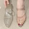 Zomer Kristal Plastic Sandalen voor Dames Dragen Puntige Middenhoge Omwikkelde Slippers Modieuze en Veelzijdige Sleehak Halve Slippers