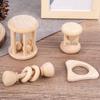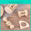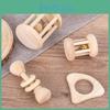 4 Pieces Wooden Baby Rattle Toy Montessori Teething Ring Log Geometric Grab Toy Natural Wood Rattle Set for Infants and Toddlers