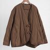 Johnature Women Vintage Plus Cotton Warm Button Parkas V-Neck Long Sleeve Cotton Winter Coats Print Floral Pockets Parkas