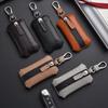 Kunstleer autosleutelhoes met doorzichtig venster sleutelhangerketting metalen haak draagbare afstandsbediening sleutelhangerhouder ritszak beschermer etui portemonnee