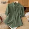 GMXIA Damesmode Casual Zomer Effen Kleur Print Korte Mouw V-Hals Blouses & Shirts