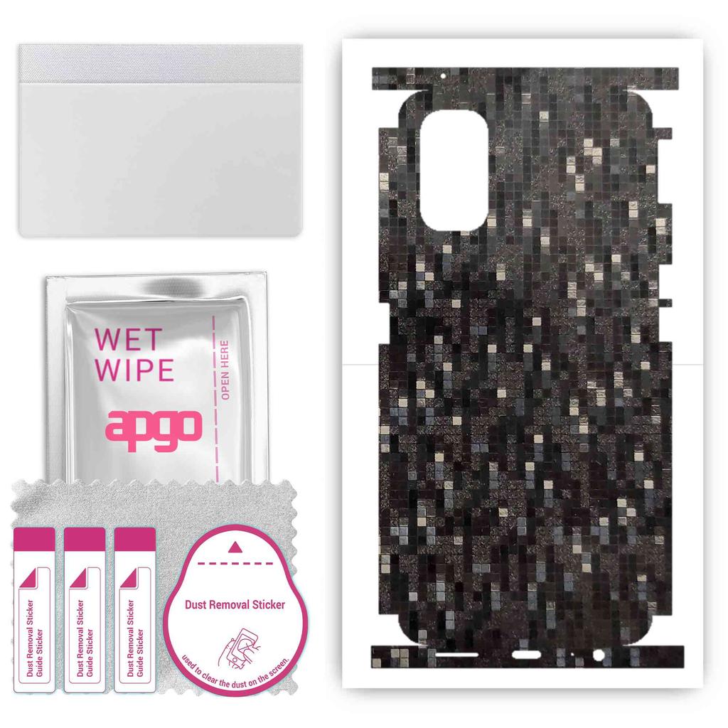 apgo Protective Skin Sticker for the back+sides compatible with Realme 7 Pro, Full Wrap Film, Foil, Vinyl - Pattern Carbon Black Pixel