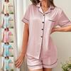 Pyjama Dames Zomer Effen Kleur Korte Mouw Shorts Casual Dames Huiskleding Set
