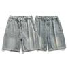 Gewassen en versleten denim shorts voor heren, los model, casual, rechte pijpen, over de knie, vijfpuntige broek, trendy merk, high street, Amerikaanse stijl