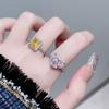 Women Ring Double Layer Adjustable Open Design Eye-catching All-match Jewelry Gift Pink Faux Crystal
